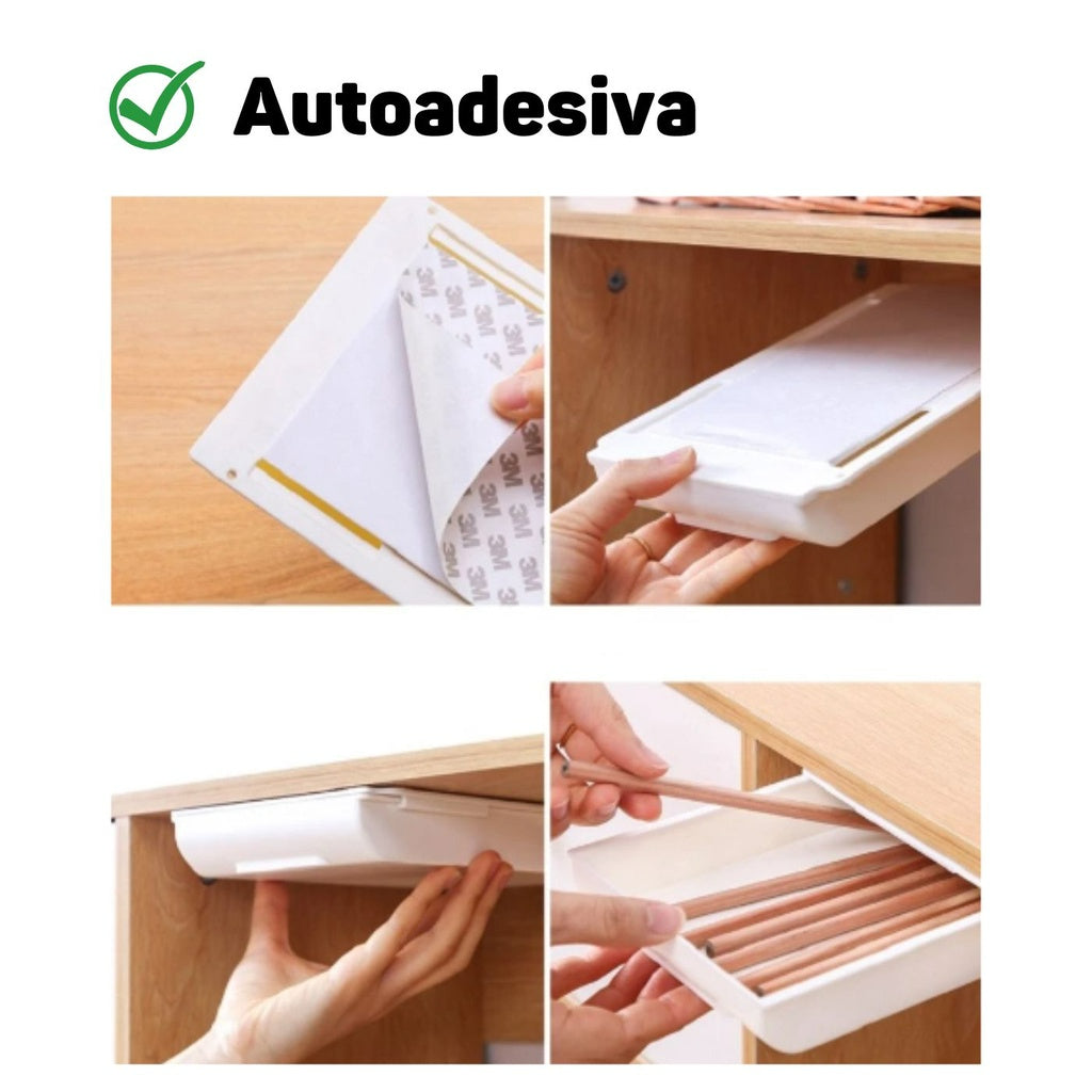 Gaveta Adesiva Oculta Multiuso para Organizar sua Mesa com Mais Praticidade